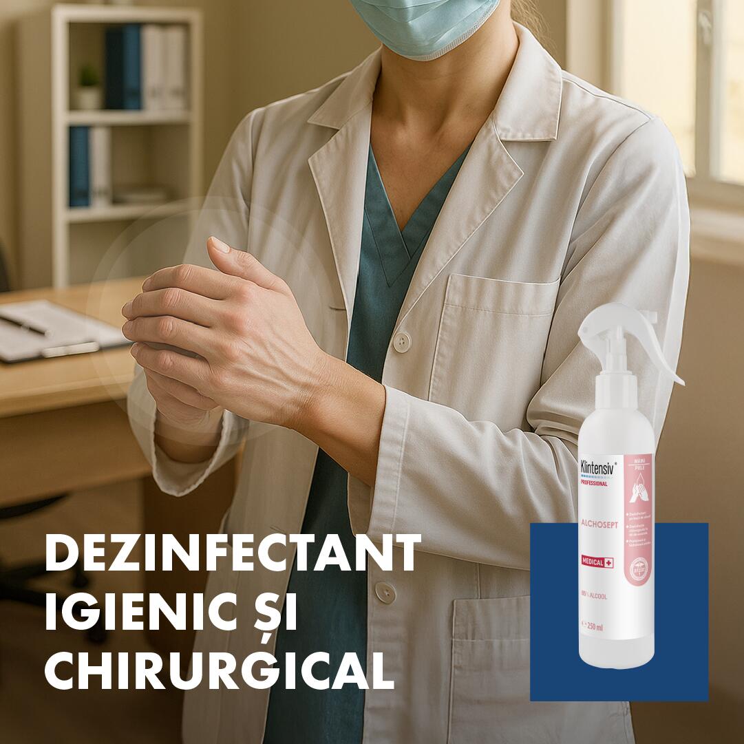 KLINTENSIV ALCHOSEPT™ este un produs de curatare cu actiune rapida, fiind ideal pentru utilizari frecvente in cabinetele medicale, pentru curatarea mainilor inainte si dupa fiecare contact cu pacientul.