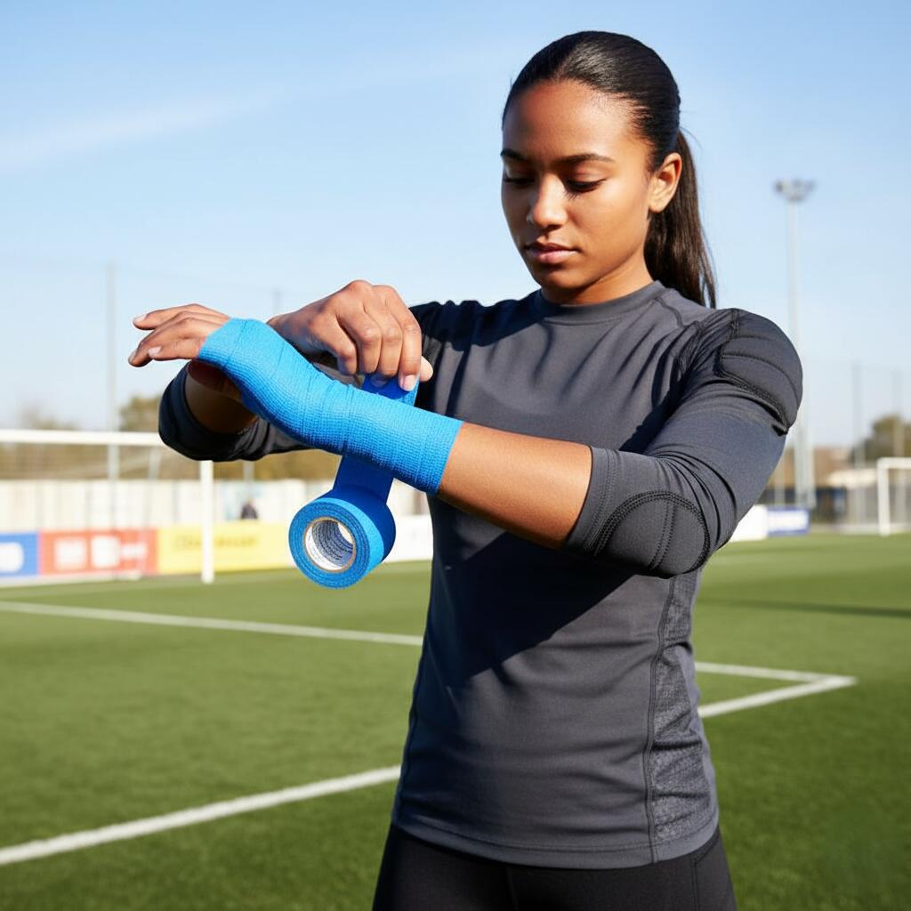 Bandajele autoadezive sunt preferate în medicina sportivă și veterinară datorită capacității lor de a oferi susținere fermă fără disconfort și fără a afecta circulația sângelui.