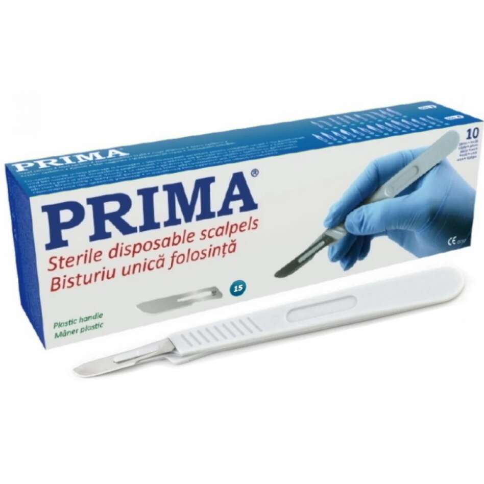 Bisturiu steril de unica folosinta, cu maner de plastic.