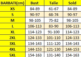 Bust: Expirati, apoi masurati sub axila circumferinta cea mai mare a bustului.