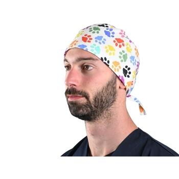 Boneta unisex cu legaturi, imprimata. Marimea este universala, se potriveste pentru oricine, si se fixeaza usor prin legaturile din spate.Materialul este compus din 100% bumbac, un material rezistent. Se poate spala la max.40 grade in masina de spalat.