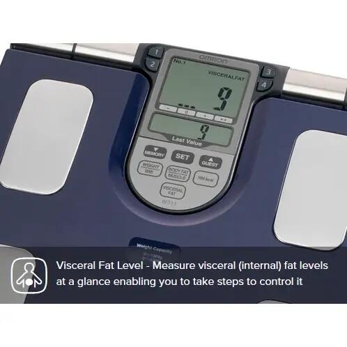 Cântar electronic cu analiză corporală completă, care utilizează tehnologia de impedanță bioelectrică pentru evaluarea compoziției corpului. Dispozitivul folosește 8 senzori plasați la nivelul mâinilor și picioarelor pentru a măsura greutatea, procentul de grăsime corporală, masa musculară, grăsimea viscerală, indicele de masă corporală și rata metabolismului bazal.