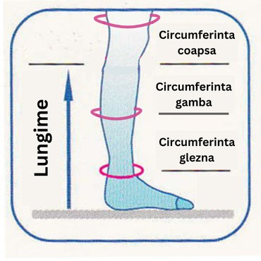 Marimea potrivita se determina conform tabelului, dupa masurarea circumferintei gambei si a gleznei (in cm):