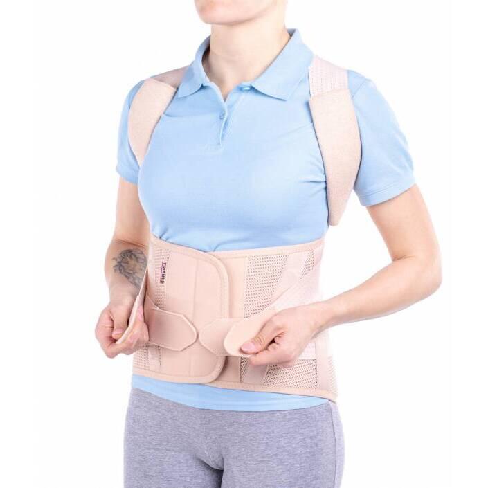Cele 2 atele laterale și cele 2 atele paravertebrale din material plastic stabilizează coloana toracolombară reducând ușor lordoza și cifoza, iar compresia pe care o exercită benzile elastice stimulează metabolismul local, reducând astfel tensiunea musculară și durerea.