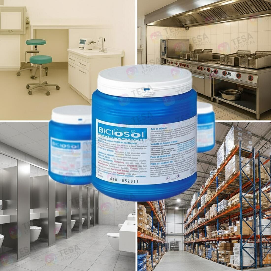BICLOSOL este un dezinfectant puternic pe bază de clor, sub formă de tablete solubile, creat pentru a asigura o igienizare completă și sigură.