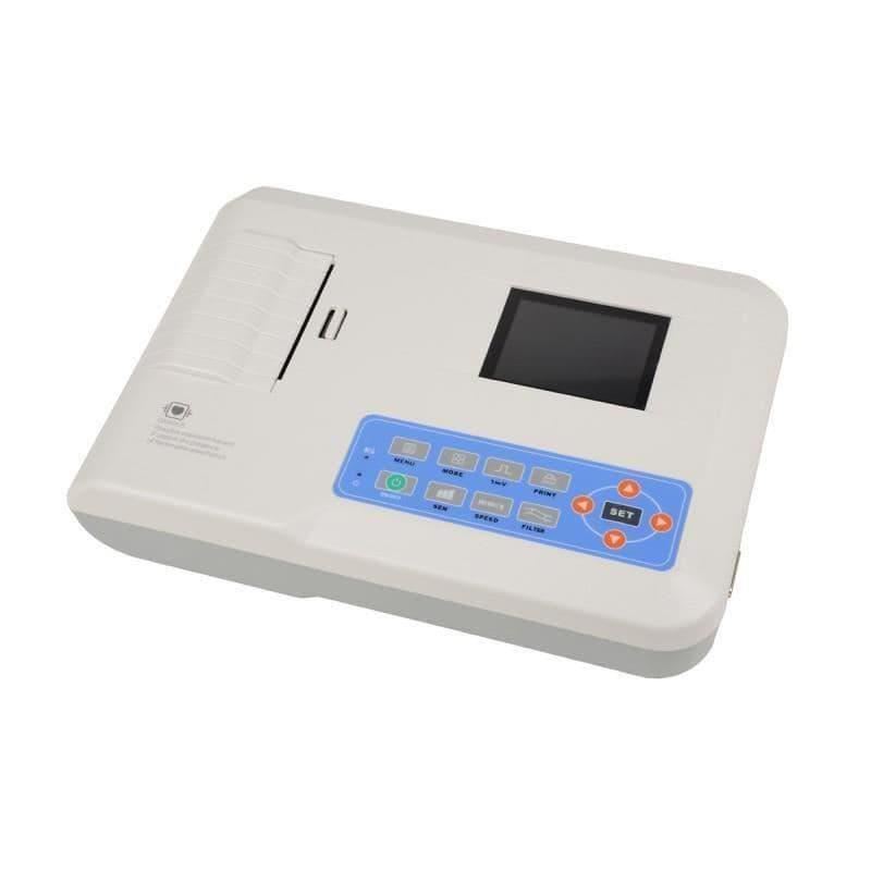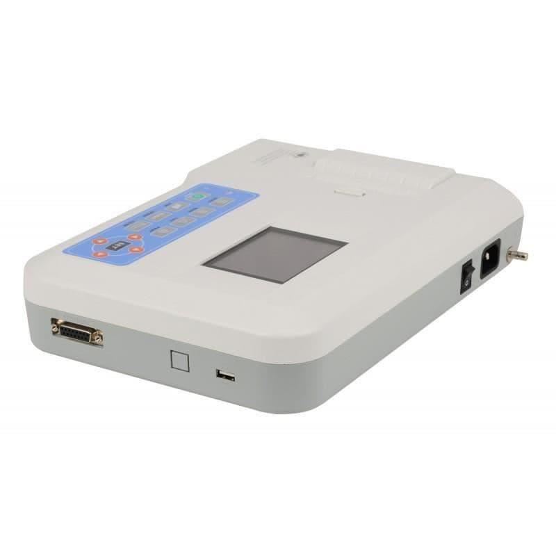 ECG300G este un electrocardiograf care poate colecta semnalul EKG pe 12 canale simultan și poate imprima electrocardiograma pe 3 canale simultan cu ajutorul unei imprimante termice încorporate. Caracterizează, înregistrează și afișează formele de undă EKG în modul AUTO/Manual, măsurând și diagnosticând automat parametrii formelor de undă EKG, semnalând detaşarea electrozilor şi/sau lipsa de hârtie de imprimare.