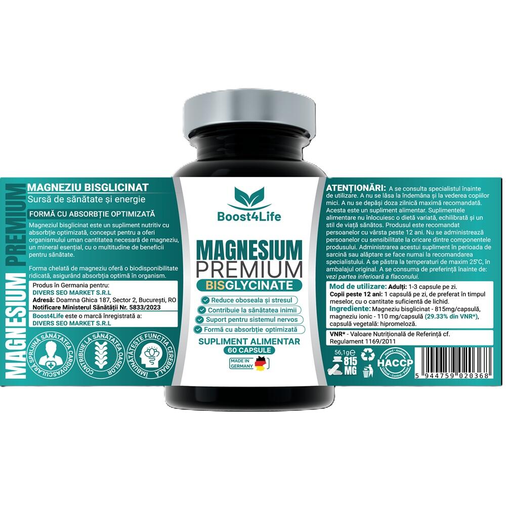 Tip produs: supliment alimentar cu magneziu bisglicinat.