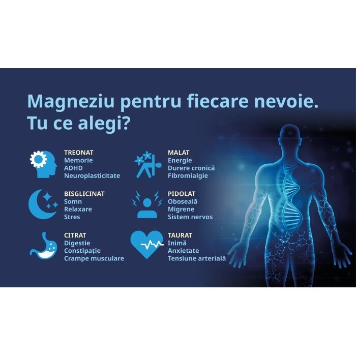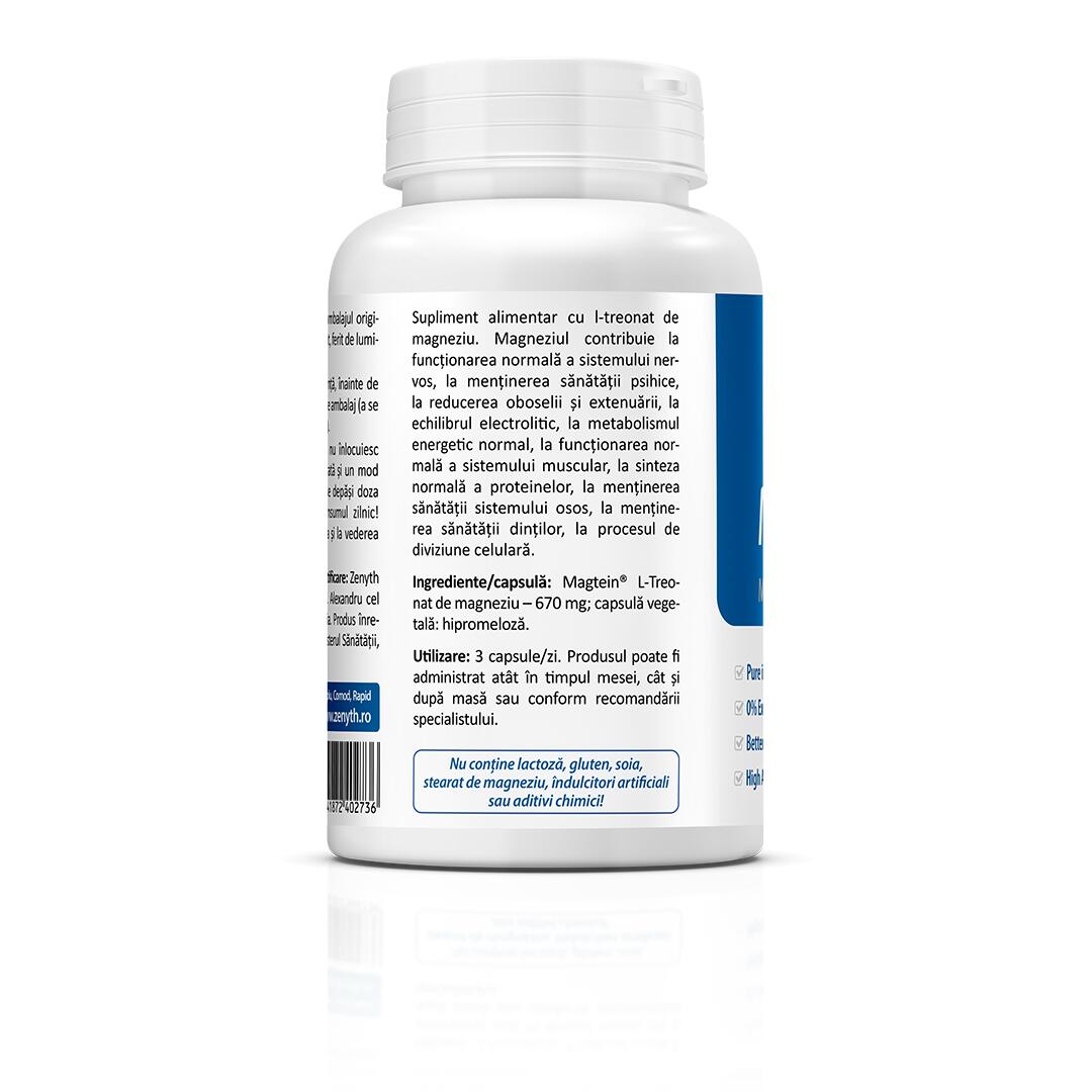 Magneziu Treonat Magtein® este un supliment alimentar inovator, creat pentru sănătatea creierului și a sistemului nervos. Este singura formă de magneziu care poate trece direct în creier, acolo unde are efecte reale asupra memoriei, concentrării și echilibrului emoțional.