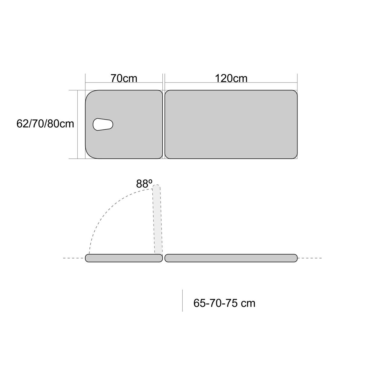 Spătar reglabil manual, unghi maxim de înclinare: până la 88°.