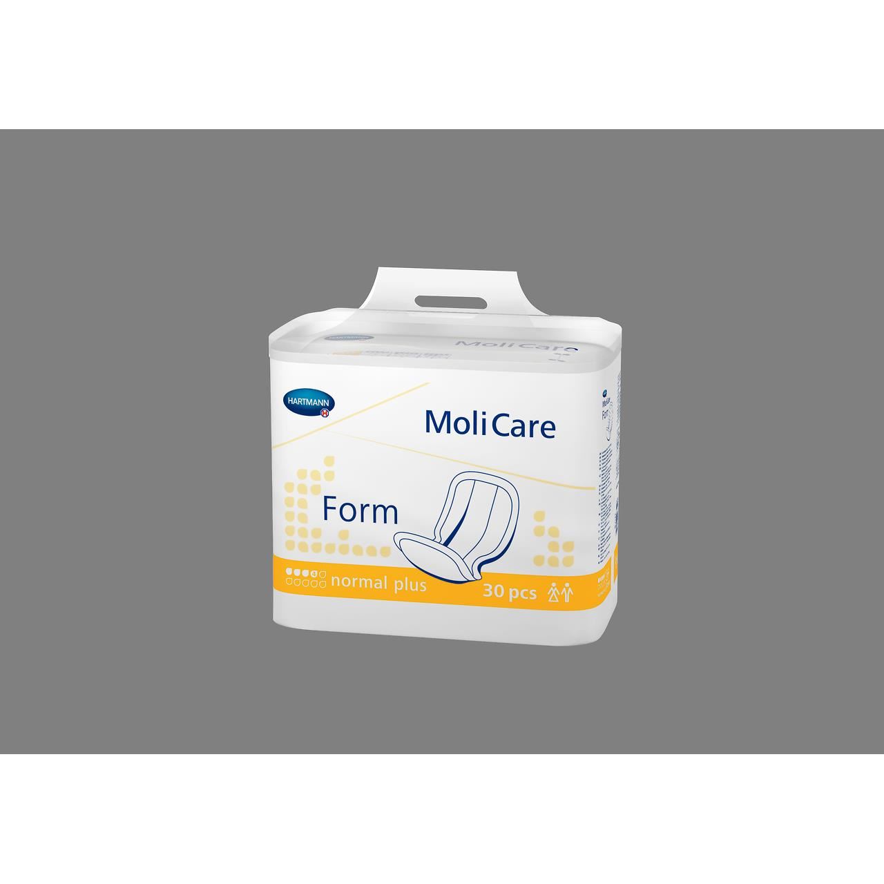 Tampoanele practice pentru incontinenta, cu forma anatomica, MoliCare® Form prezinta nucleu absorbant alcatuit din trei straturi - strat de distributie cu uscare rapida; bariere anti-scurgere din material moale; fibre elastice in zona inghinala; folie spate din polietilena si indicator de umiditate.