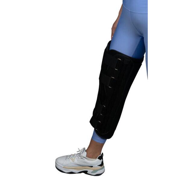 Orteza pentru genunchi este folosită pentru a ține piciorul drept și a imobiliza articulația după accidente, entorse, luxații sau operații. Are trei panouri cu susținere rigidă și se prinde pe picior cu benzi late cu arici. Poate fi pusă atât pe piciorul stâng, cât și pe cel drept, și este ușor de ajustat.