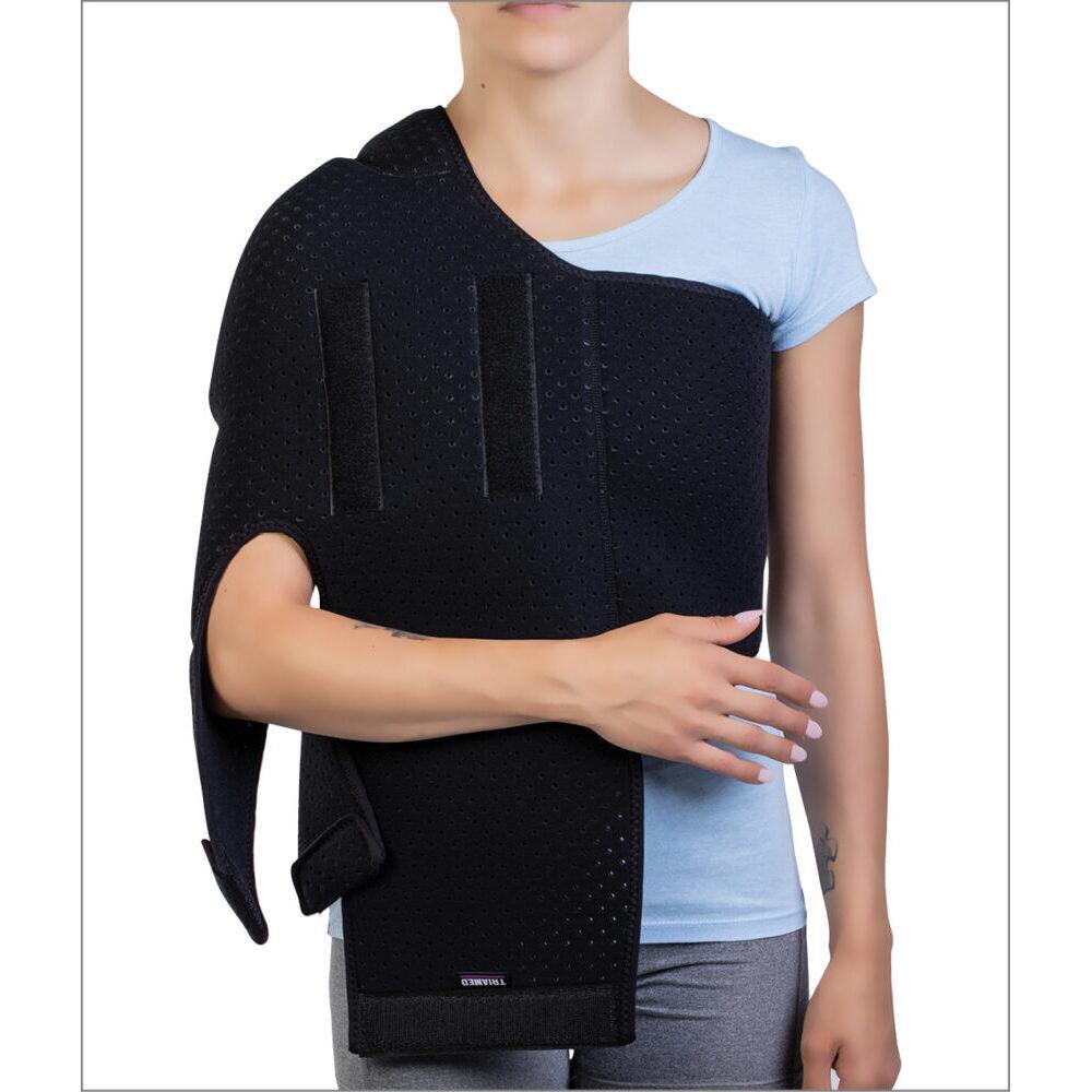 Se utilizează pentru imobilizarea braţului şi antebraţului, în caz de entorse, luxaţii sau fracturi la nivelul articulaţiei scapulohumerale, contuzii, periartrită scapulohumerală, imobilizare postoperatorie. Reprezintă echivalentul bandajului Dessault. Este confecţionată din material textil, are o singură componentă ce cuprinde circular trunchiul şi umărul afectat, împreună cu braţul şi antebraţul. Materialul textil folosit are două feţe, orteza putând fi folosită pe ambele membre prin întoarcerea pe dos și repoziţionarea capetelor de fixare cu scai. Orteza este un suport pentru antebraţ, braţ și umăr. Datorită formei sale particulare și a suprafeţei anatomice pe care o acoperă, nu permite abducţia braţului și rotaţia externă.