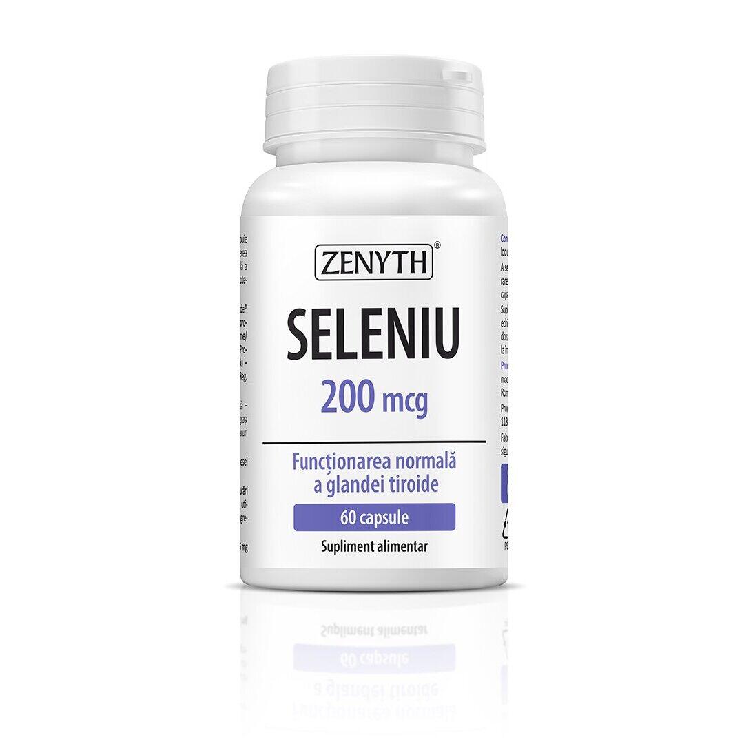 Seleniu 200 mcg este un supliment alimentar cu seleniu, recomandat pentru funcționarea normală a sistemului imunitar, pentru susținerea funcției tiroidiene, pentru creșterea fertilității și pentru menținerea sănătății părului și unghiilor. Seleniul joacă rolul principal în menținerea funcției tiroidiene. La acest nivel, seleniul este necesar pentru conversia hormonului tiroidian T4 (tiroxina) în forma sa activă – T3 (triiodotironina). Seleniul susține fertilitatea masculină, prin creșterea spermatogenezei. În cazul femeilor, seleniul reduce riscul de avort spontan. Tot în cazul femeilor, suplimentarea cu seleniu reduce din simptomele neplăcute care însoțesc menopauza și contribuie la păstrarea structurii osoase normale și la menținerea unui aspect tânăr al pielii. Seleniul este un antioxidant puternic, care ajută la neutralizarea radicalilor liberi produși în corp urmare a stilului de viață nesănătos (alimentație dezechilibrată, fumat, consum de alcool, abuz de medicamente, poluare).