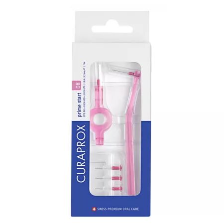 Dinți perfect curați, chiar și în spațiul interdentar greu accesibil. Va avea grijă de asta setul de îngrijire dentară Curaprox Prime Start, care include 5 periuțe interdentare, 1 suport practic pentru curățare confortabilă și 2 suporturi cu capac pentru a proteja periuța de murdărie și deteriorare.