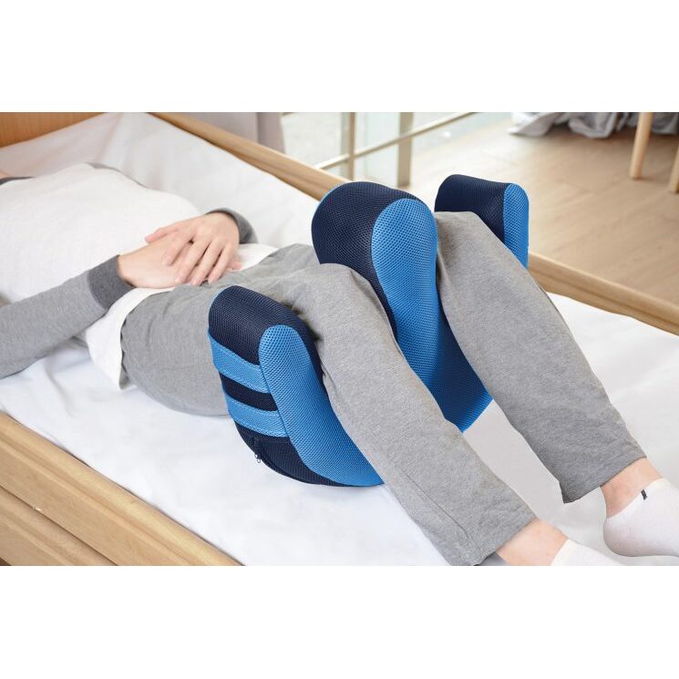 • Cum se folosește perna? Se plasează sub genunchii pacientului și, prin tragerea ușoară a mânerelor, acesta poate fi rotit lateral.