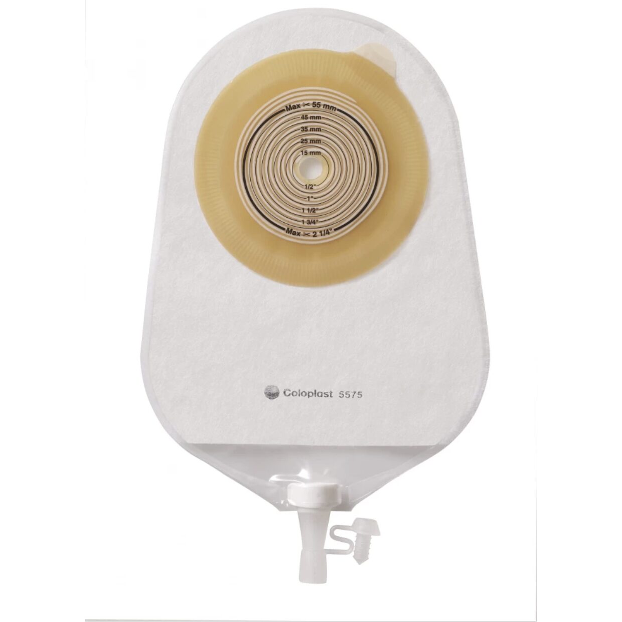 opac, cu evacuareflansa alcatuita prin alternarea in spirala a unui strat alb din hidrocoloid cu un strat brun din polimerflansa subtire si flexibila, cu posibilitate de decupare dupa forma si dimensiunile stomeiprevazut cu “urechiusa” din material plastic ce permite indepartarea usoara a flanseisac colector alcatuit din material plastic laminat, multistratificatmaterial textil netesut pe spatele sacului colectorvalva antireflux