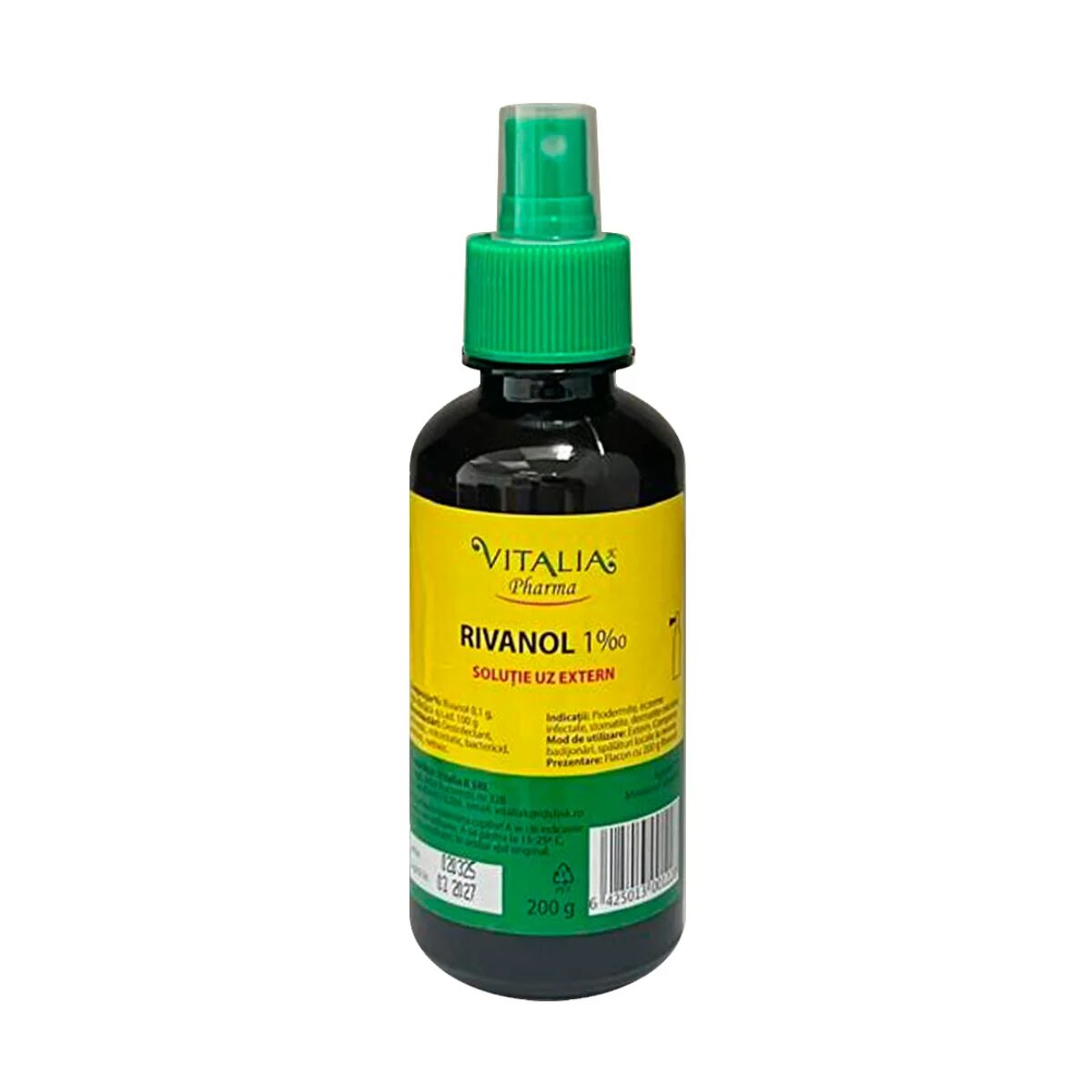 Rivanol 1% cu pulverizator Vitalia K este un antiseptic pentru uz extern, utilizat pentru curățarea și dezinfectarea pielii în cazul rănilor superficiale, zgârieturilor, arsurilor minore sau altor leziuni cutanate. Forma cu pulverizator permite aplicare rapidă și igienică, fără contact direct cu zona afectată.