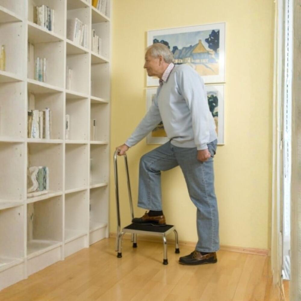 Treapta este acoperită cu un strat anti-alunecos care previne alunecările accidentale, iar mânerul de sprijin integrat asigură echilibru și siguranță suplimentară în timpul utilizării. Designul ergonomic o face potrivită atât pentru pacienți, cât și pentru personalul medical.