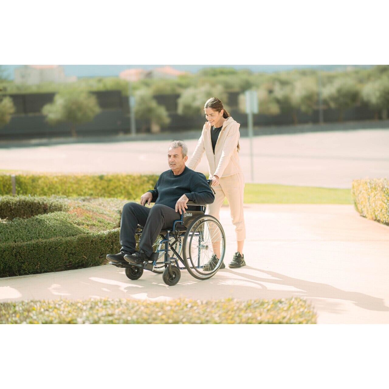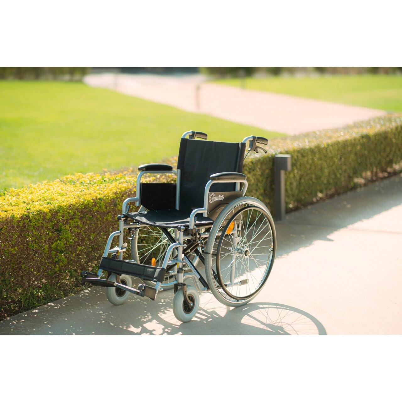 Scaunul rulant Gemini este conceput pentru utilizare zilnică, oferind un echilibru foarte bun între confort, stabilitate și siguranță. Cadrul din oțel rezistent și designul pliabil îl fac ușor de utilizat atât în interior, cât și în exterior. Șezutul de 46 cm oferă spațiu suficient pentru confort, iar roțile mari permit deplasarea ușoară chiar și pe suprafețe mai dificile.
