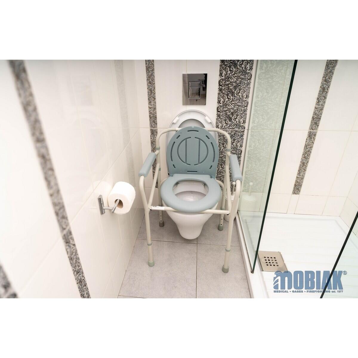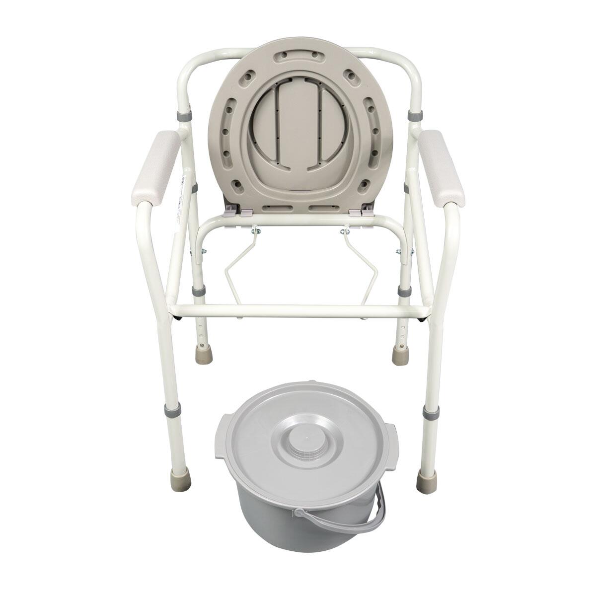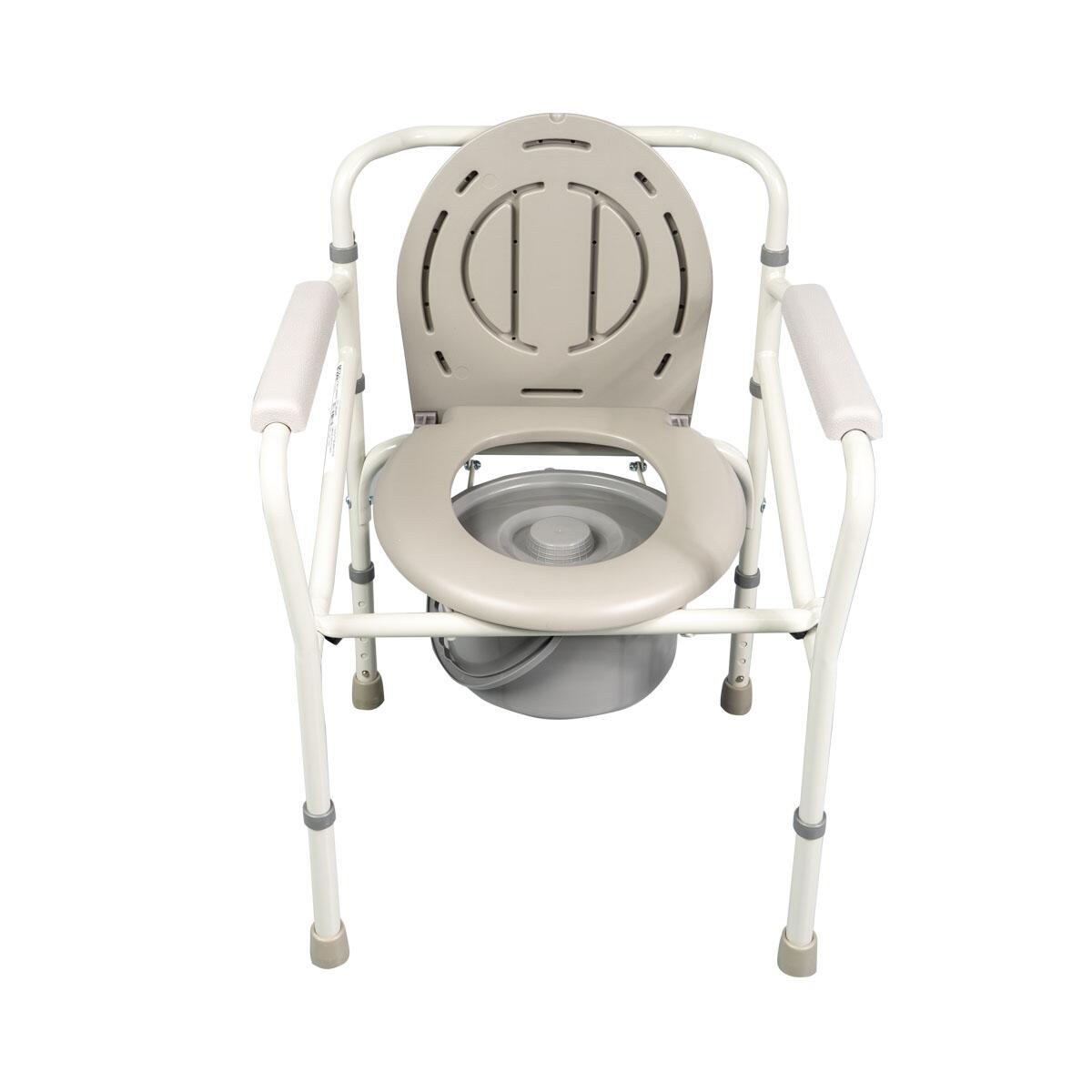 Scaunul cu vas de toaletă este o soluție practică pentru persoanele cu mobilitate redusă sau aflate în recuperare. Construit din oțel rezistent, oferă stabilitate și siguranță în utilizare zilnică.