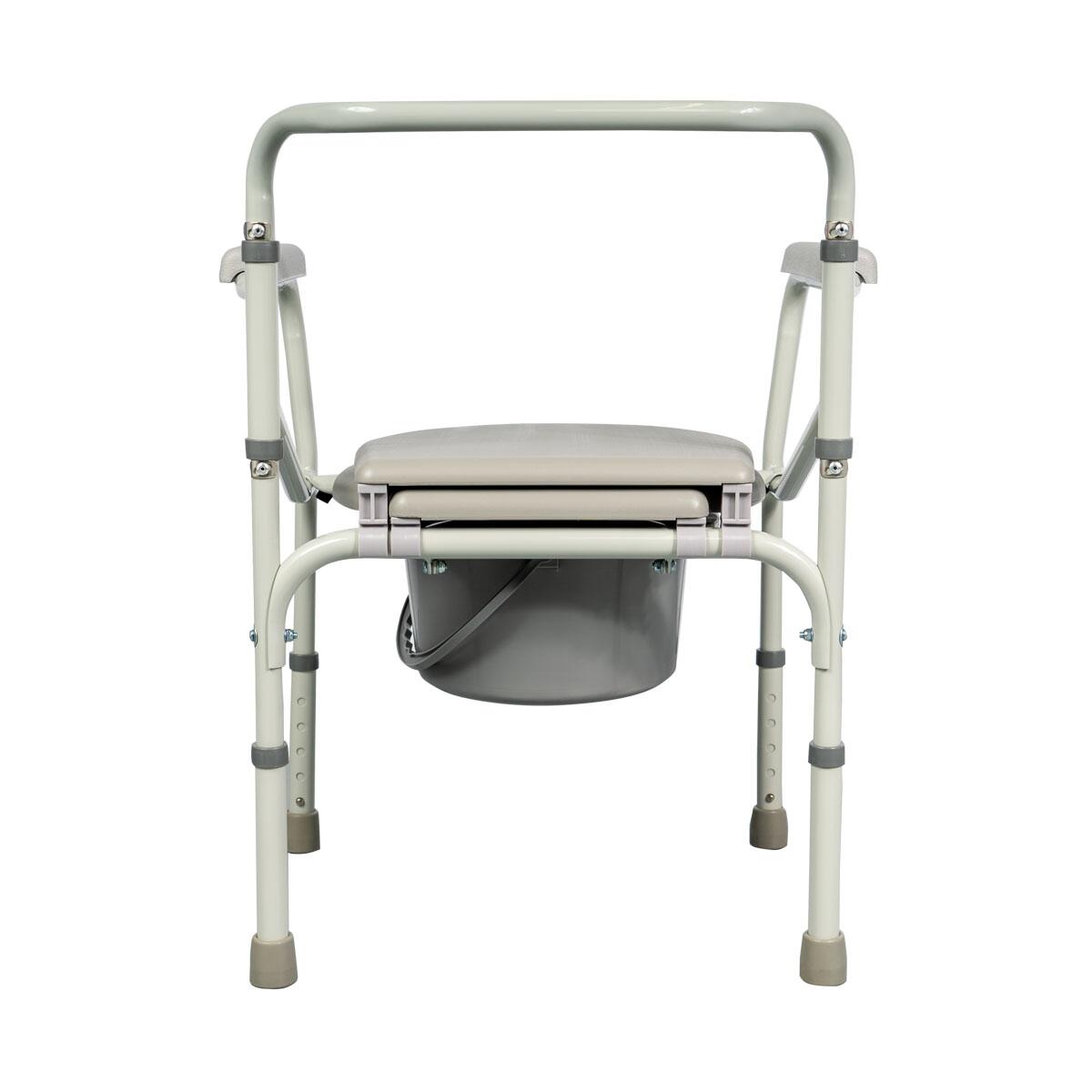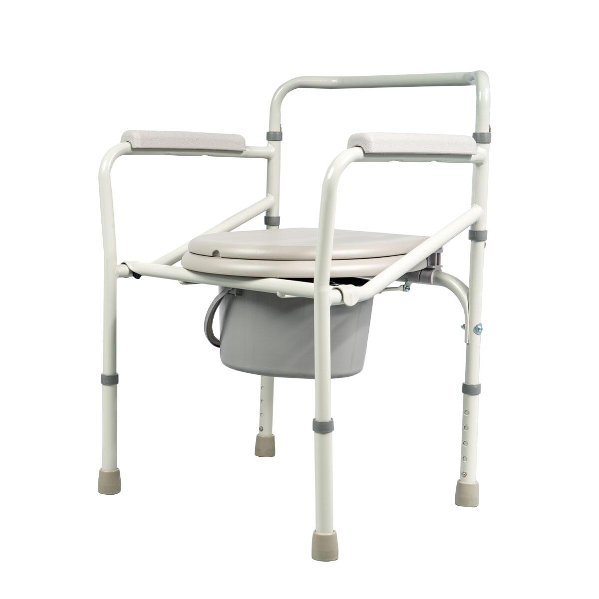 - Scaunul se reglează la înălțimea dorită, se fixează corect pe toate cele patru picioare, iar vasul se introduce sub șezut. După utilizare, vasul se detașează, se golește și se igienizează. Se verifică periodic stabilitatea și integritatea cadrului.