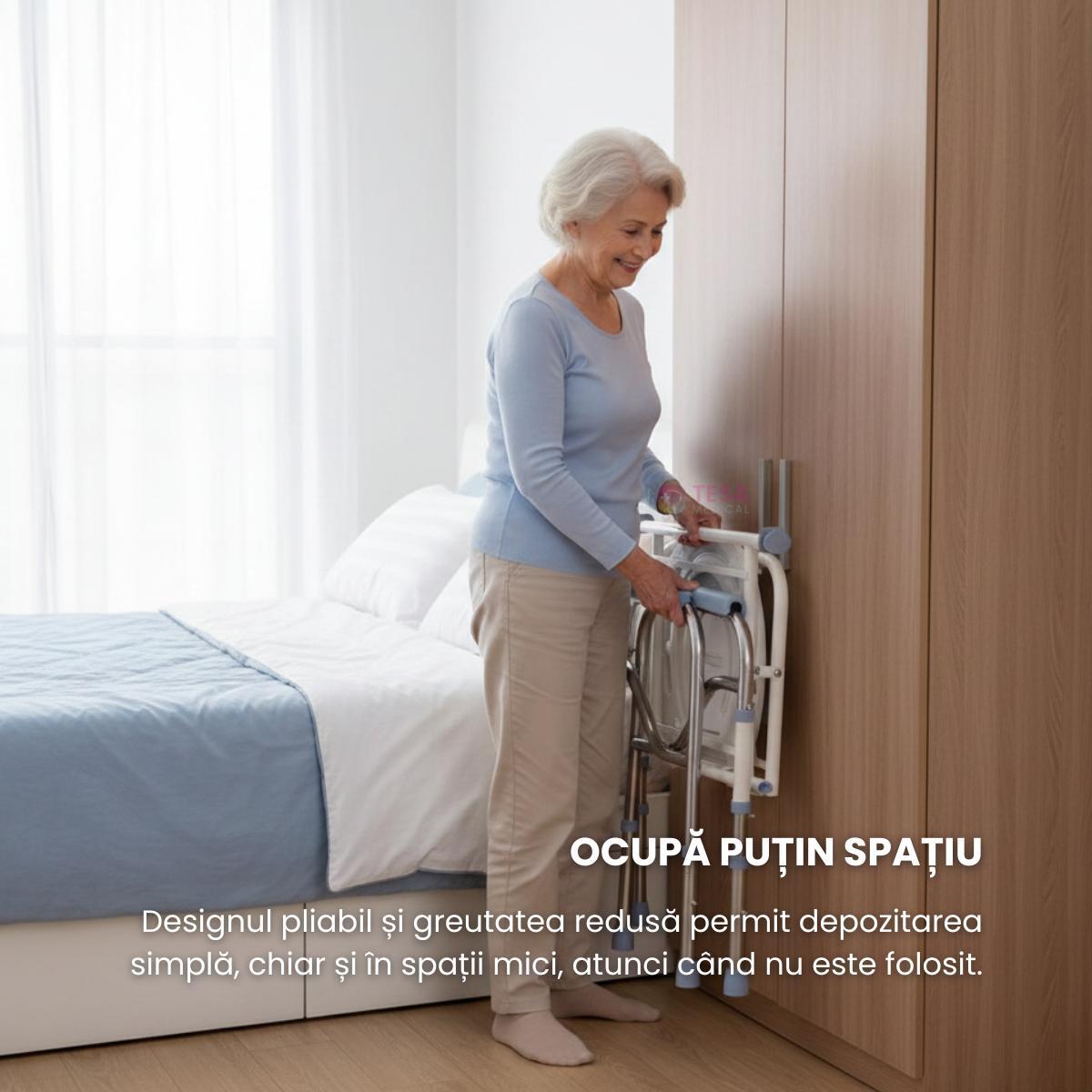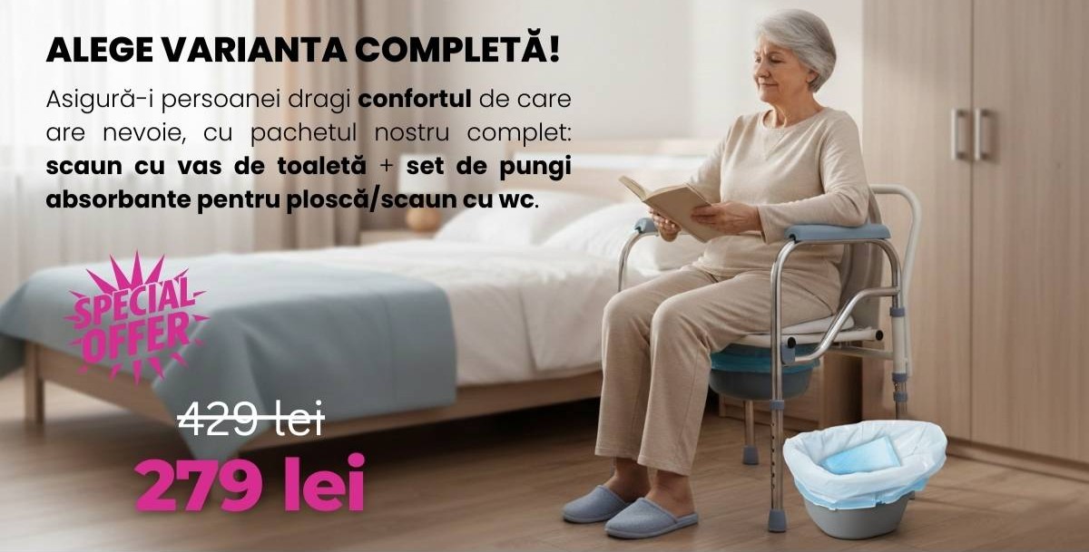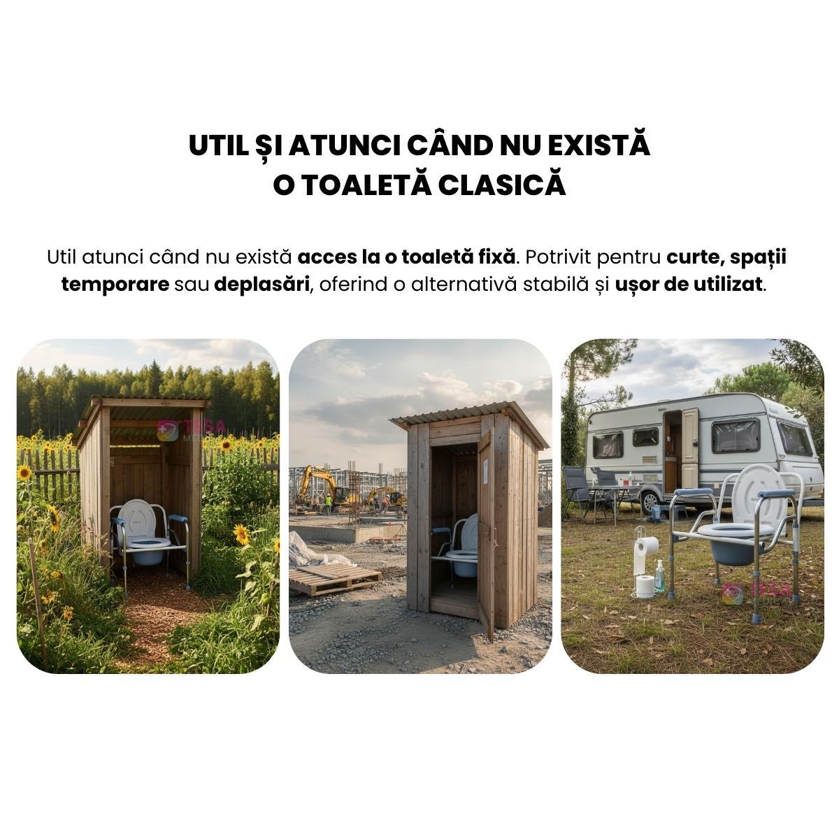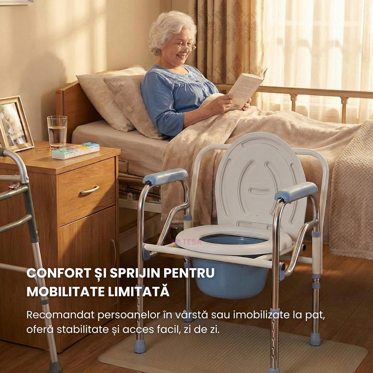 Oferă o soluție sigură și comodă pentru folosirea toaletei direct în cameră, mai ales pe timpul nopții sau când deplasarea este dificilă.