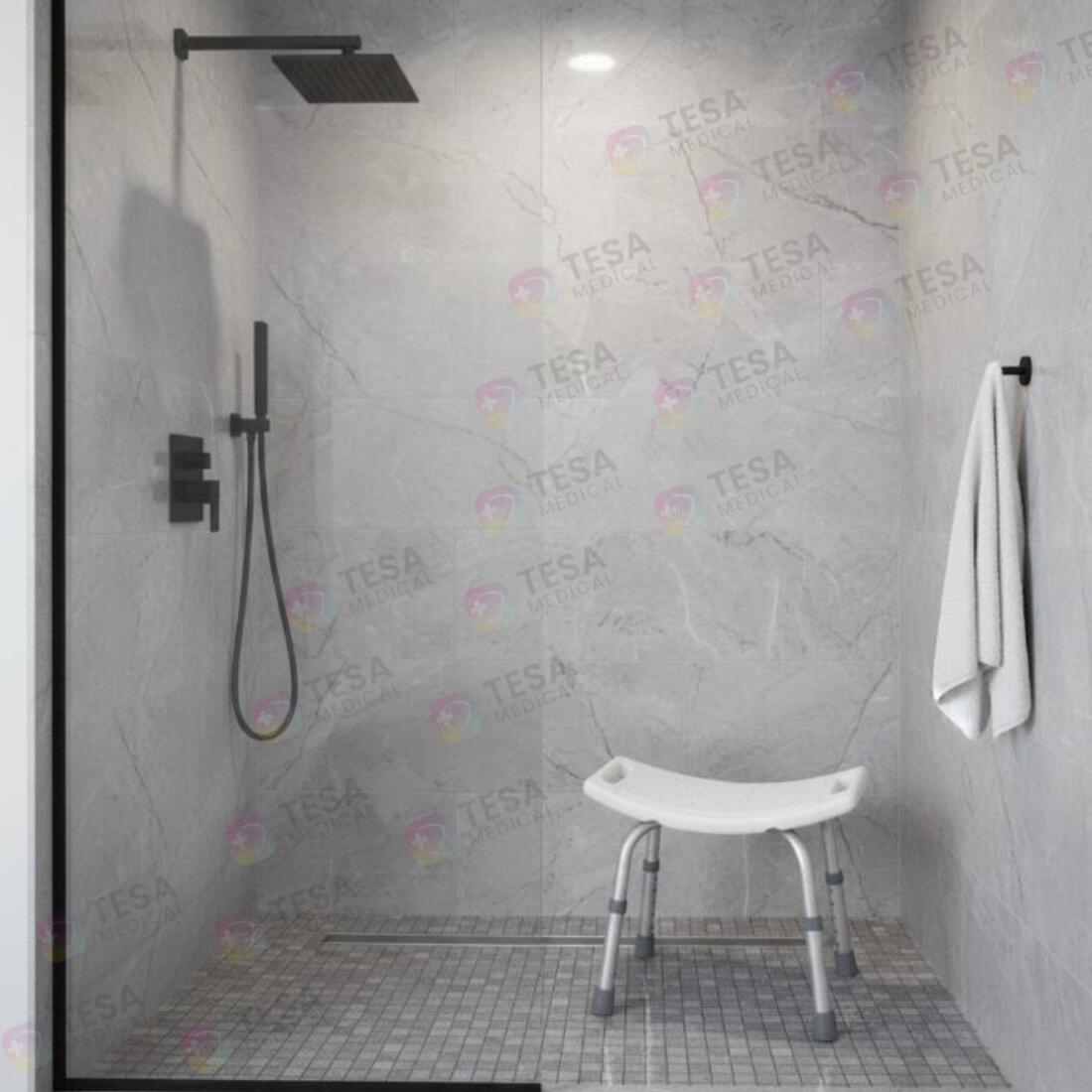 Scaun de baie/dus cu sezut curbat din aluminiu, reglabil pe inaltime, CMX-797L