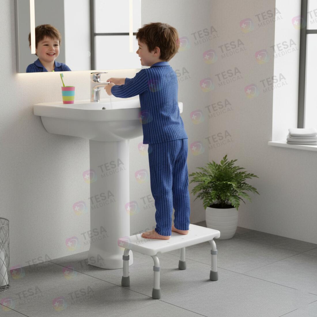 Scaun pentru dus, reglabil pe inaltime, pentru varstnici si persoane cu dezabilitati. Sezutul este realizat din LDPE(Polietilena de joasa densitate) de culoare alb.