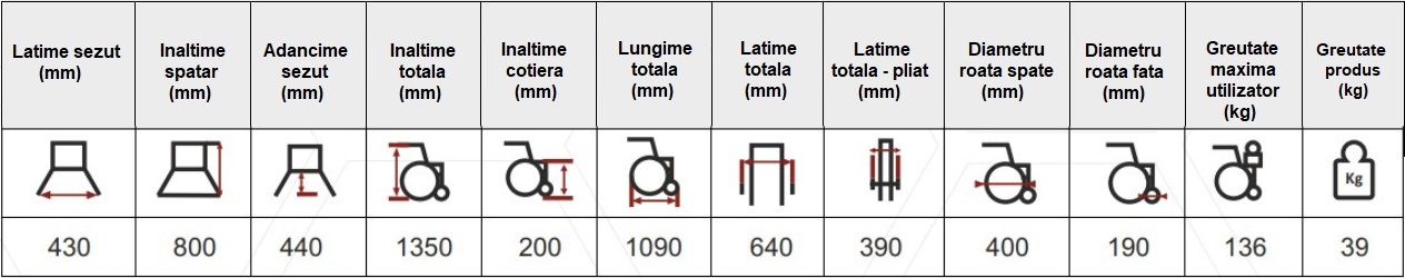 - Capacitate maxima (greutate maxima pacient): 136 kg