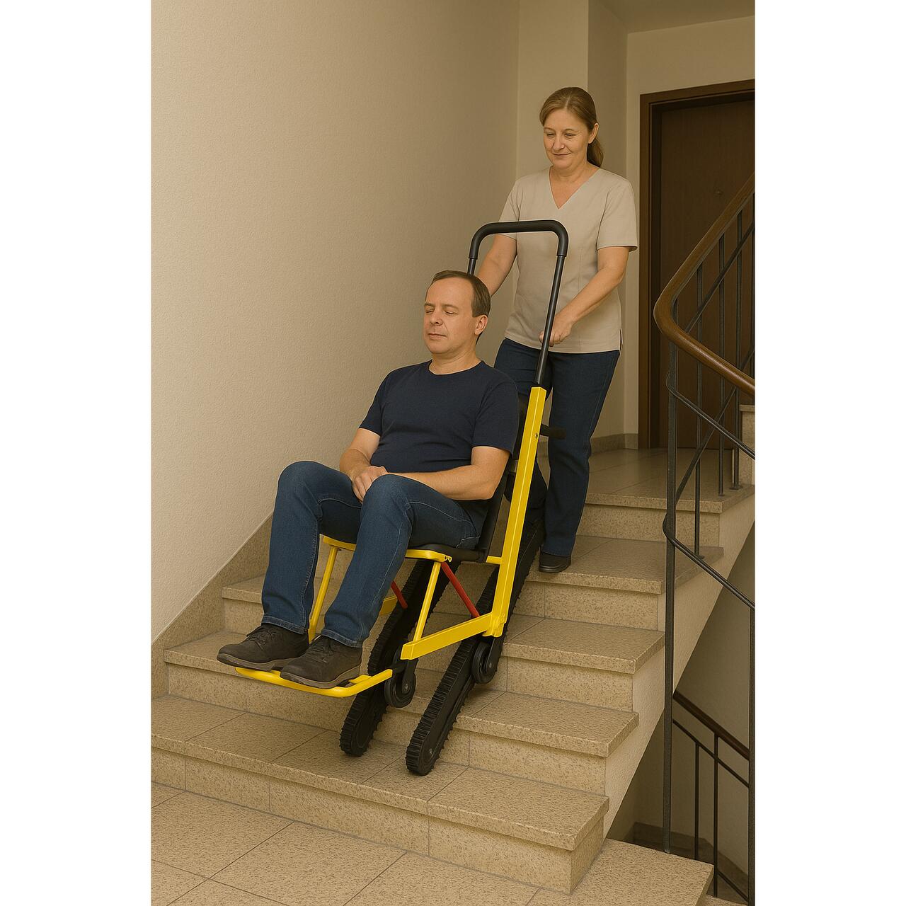 Știai că? Scaunele pentru transport pe scări reduc riscul de accidentări atât pentru pacient, cât și pentru personalul medical sau îngrijitori, în comparație cu purtarea clasică în brațe sau pe tărgi nespecializate?