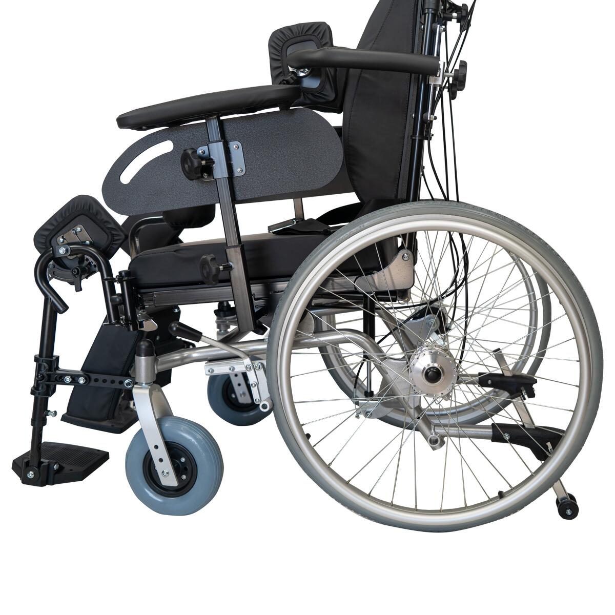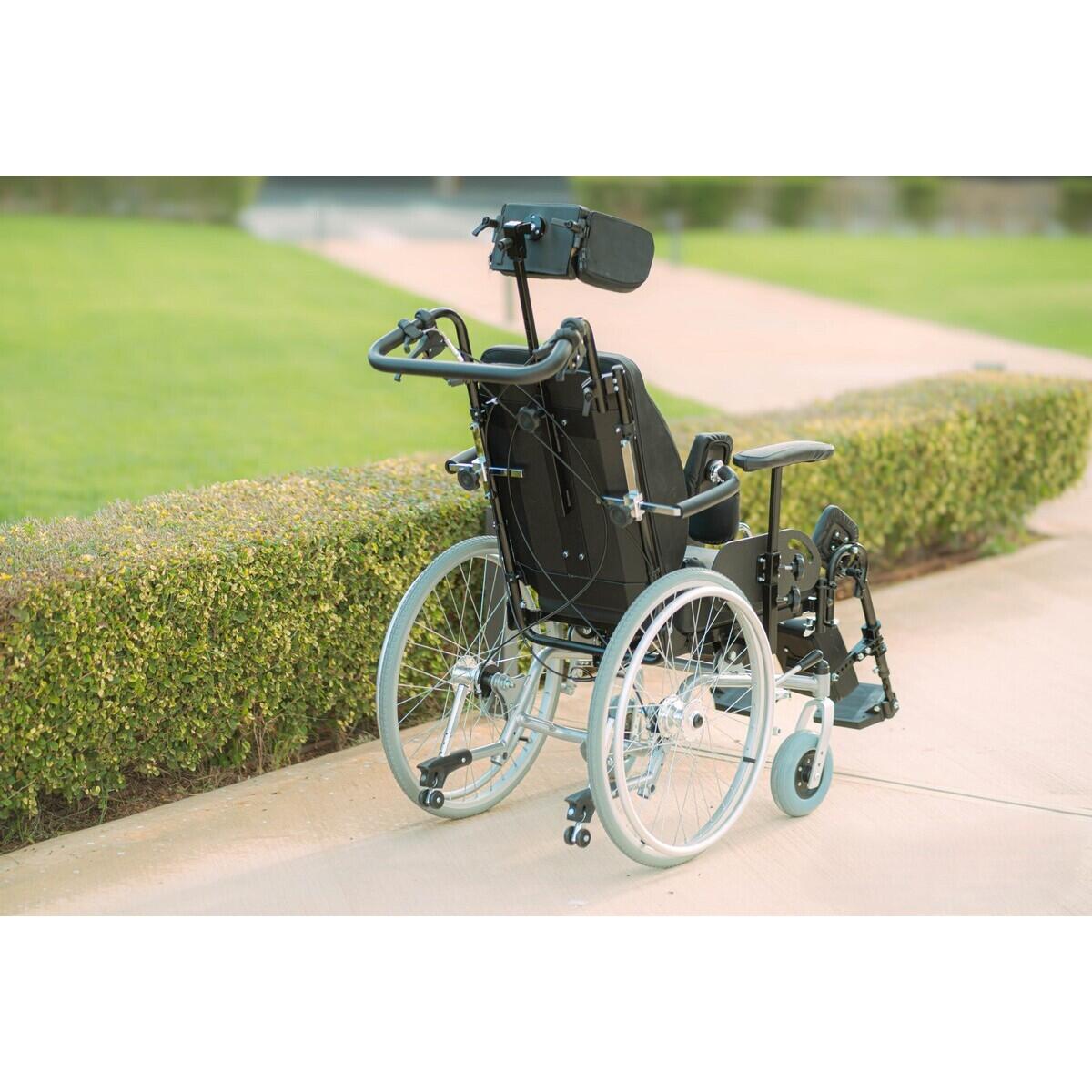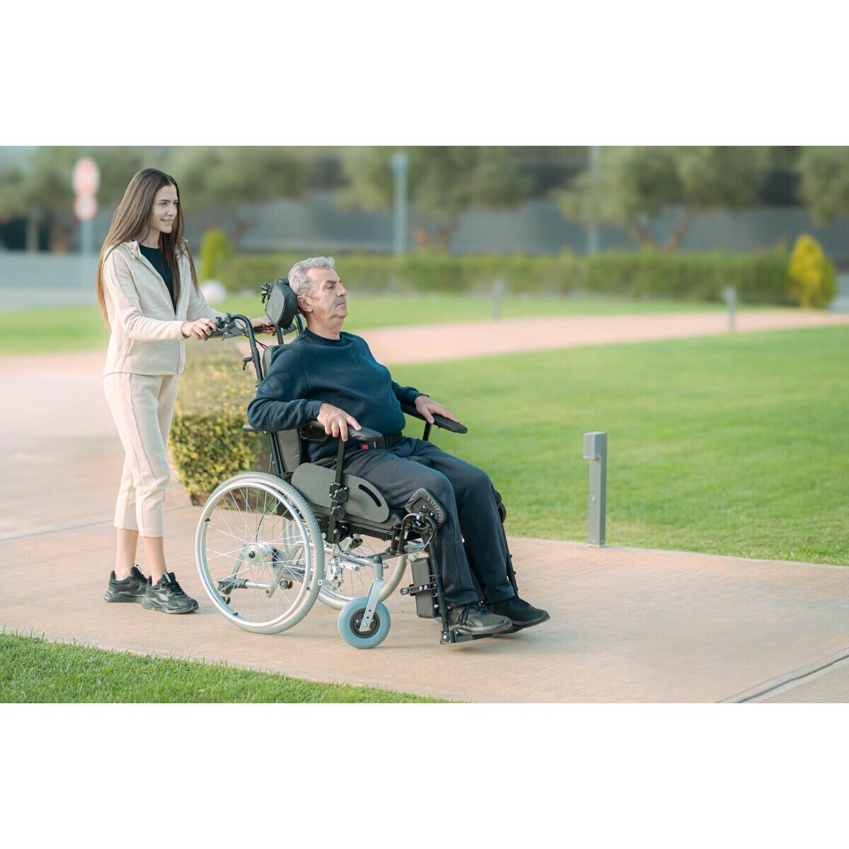 • Spătarul înclinabil facilitează odihna și transferul asistat.
