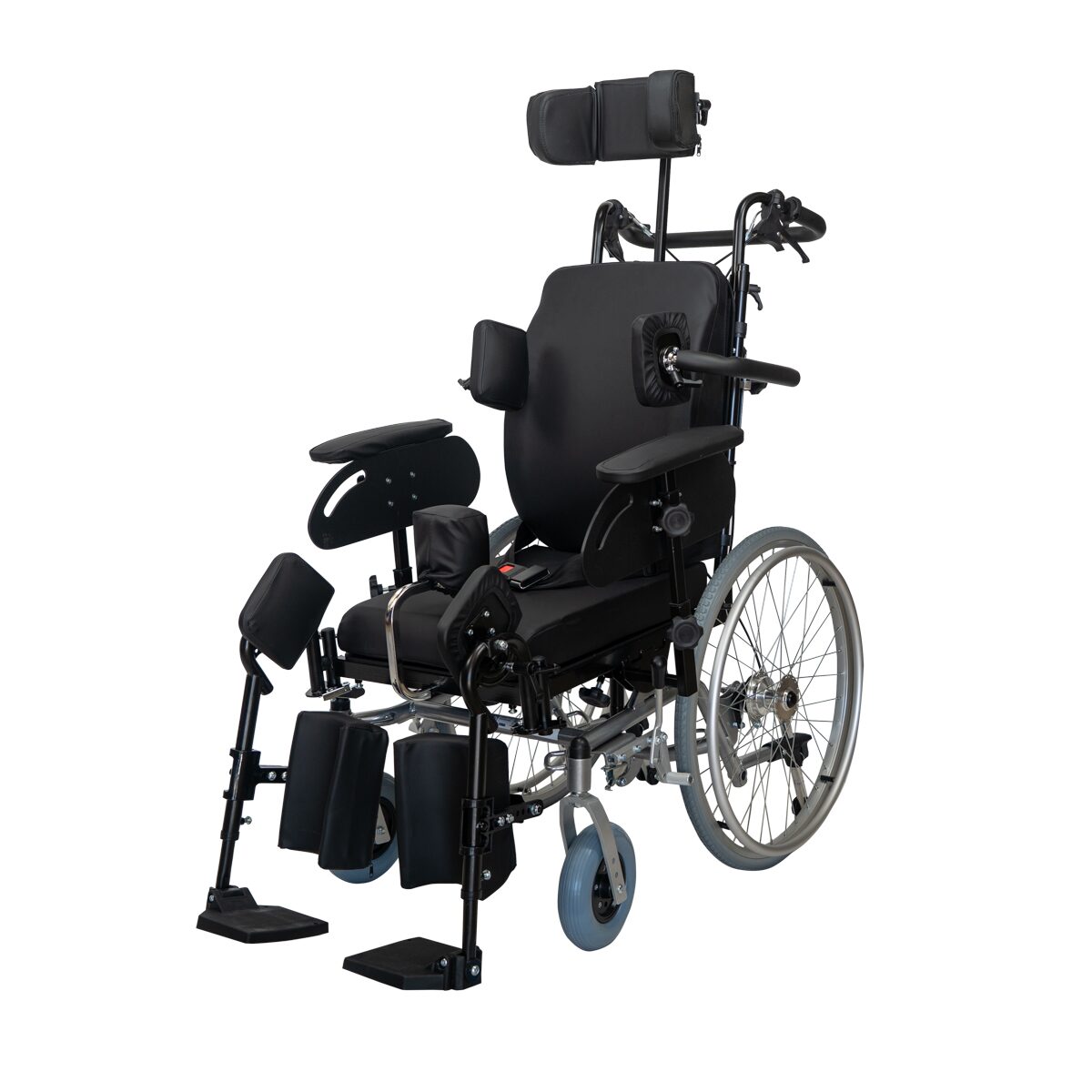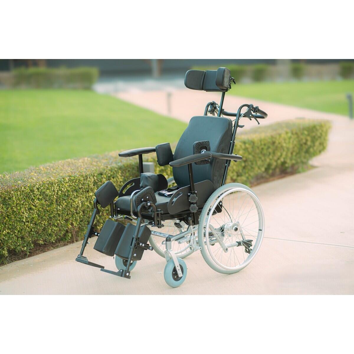 Scaunul rulant DIONE I este proiectat pentru pacienții care necesită poziționare avansată, stabilitate și confort pe termen lung. Structura sa permite ajustarea completă a spătarului, a șezutului, a suporturilor pentru cap, brațe și membre inferioare, fiind potrivit pentru utilizare zilnică în îngrijire la domiciliu sau în centre medicale.