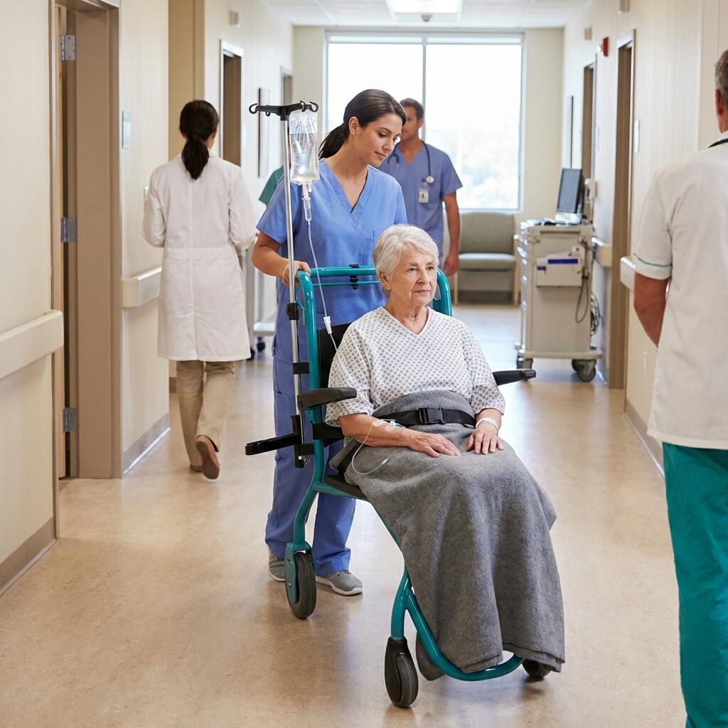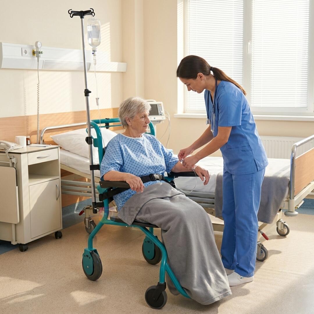 În mediul medical, timpul și siguranța sunt esențiale. Un scaun de transfer stabil, echipat cu suport pentru perfuzii, reduce riscurile și eficientizează procesul de mobilizare a pacienților.